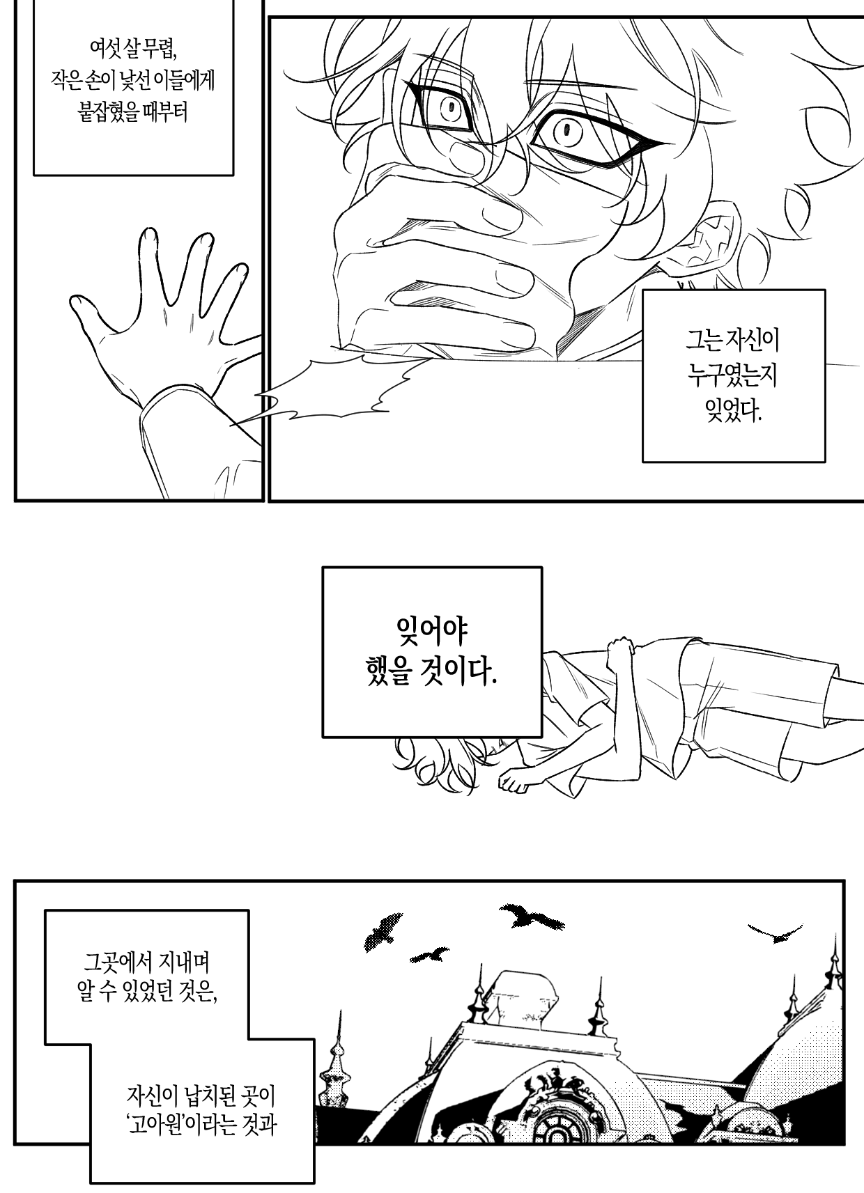 장신이 드리운 그림자는 마치 사막의 모래언덕처럼 길고 깊었고, 윤기 없이 거친 머리카락 한 올 한 올이 모래바람에 시달린 가시덤불 같았다.