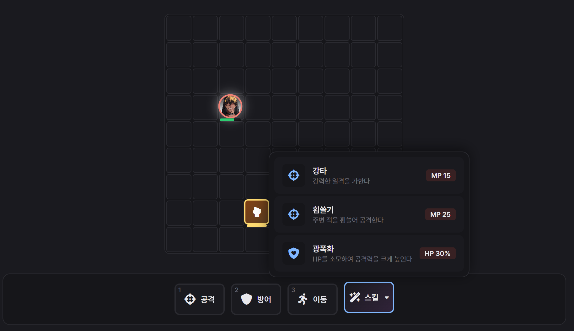 3. 탱커의 도발은 적 단일 대상을 어디에서든 선택할 수 있는가? 범위가 2-3칸 정도여야 할 거 같음.