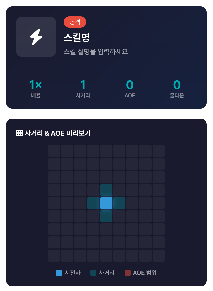 2. 딜러 강타, 휩쓸기의 문제 > 보통 딜러의 앞에 탱커가 있을 텐데, 1칸이라 탱커 너머의 적을 공격할 수 없음.