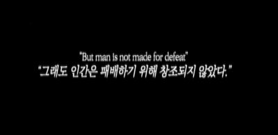 "그래도 인간은 패배하기 위해 창조되지 않았다. 인간은 파멸할지언정 패배하지는 않는다."