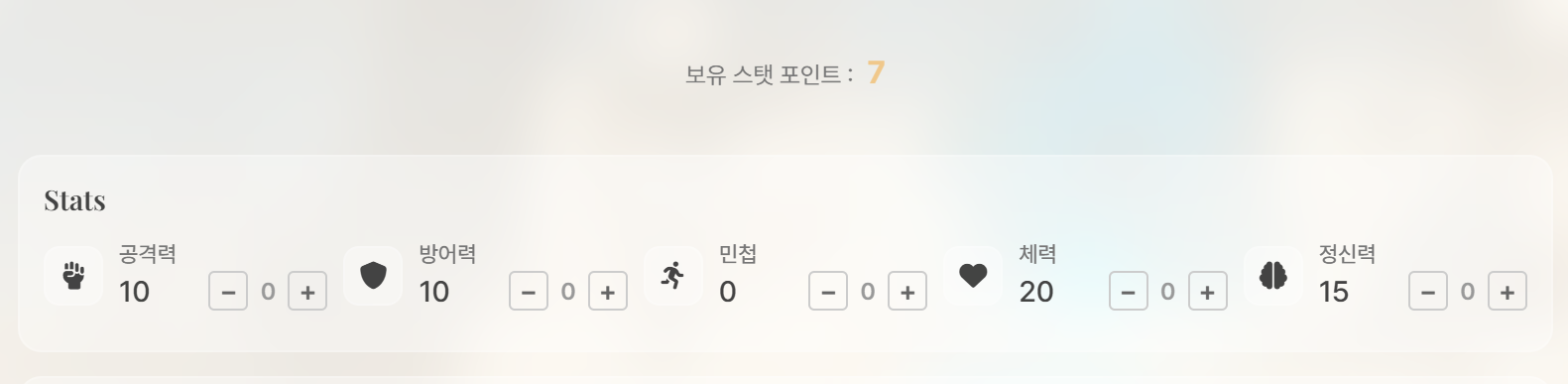 - 스탯 일괄 투자 및 반영, *스탯포인트 초기화권 구현 필요